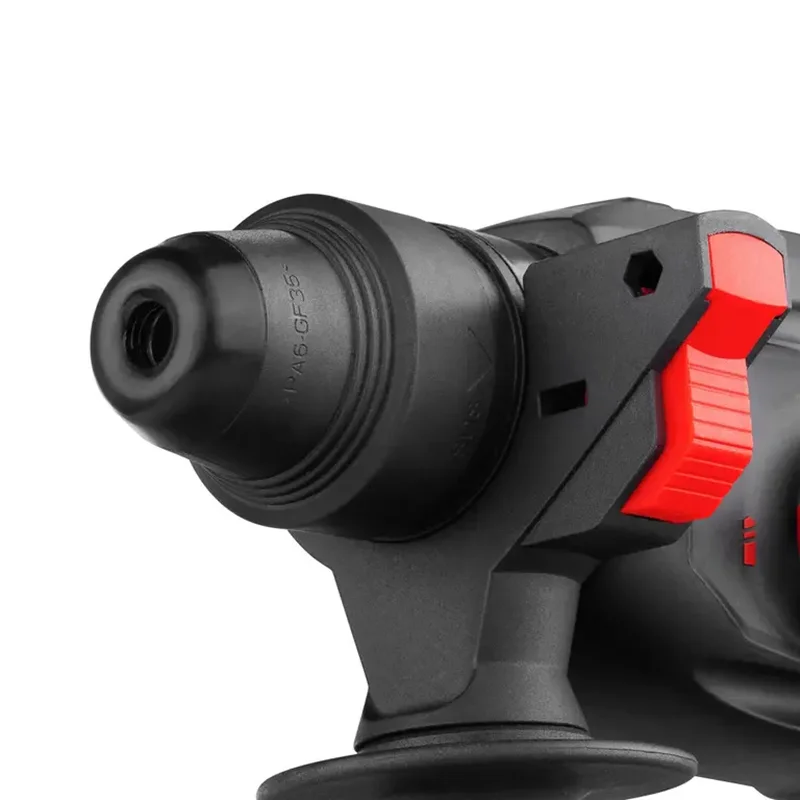 ابزارگیر چهارشیار (SDS-PLUS) 28 میلیمتری با امکان تعویض سریع و راحت مته؛ ظرفیت سوراخکاری این بتنکن در فلزات برابر با 13 میلیمتر، در چوب 40 میلیمتر و در بتن 28 میلیمتر میباشد.