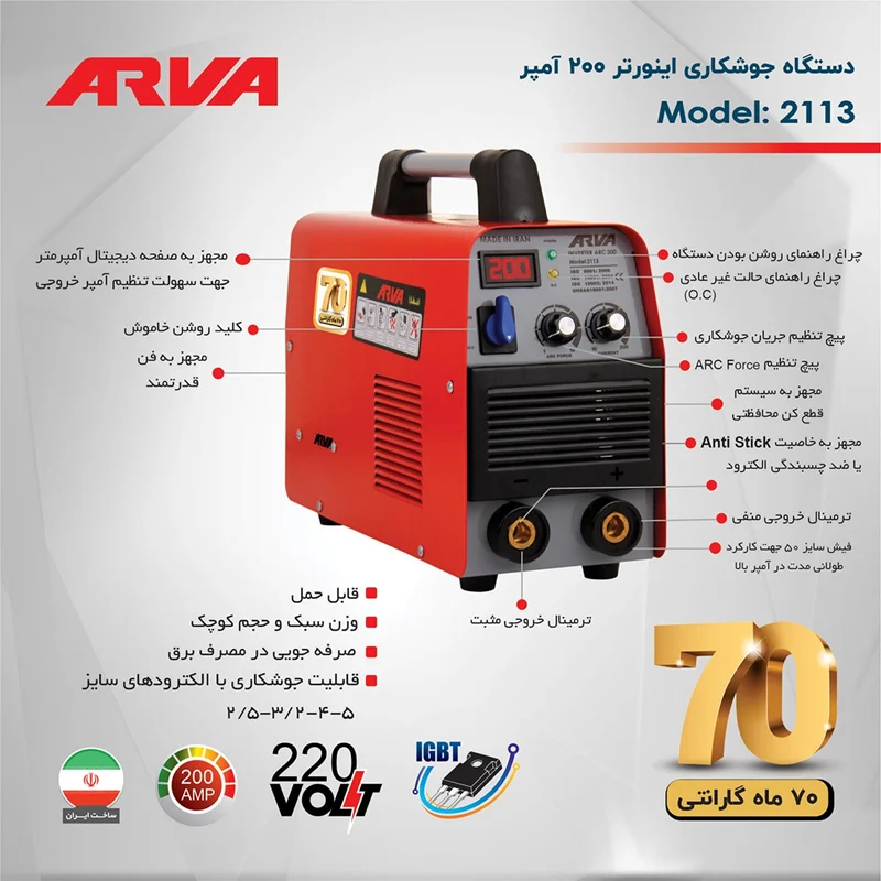 دارای 70 ماه گارانتی معتبر شرکت آروا.