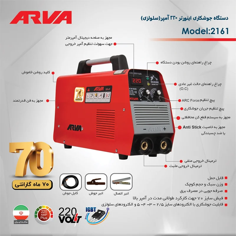 دارای 70 ماه گارانتی معتبر شرکت آروا.