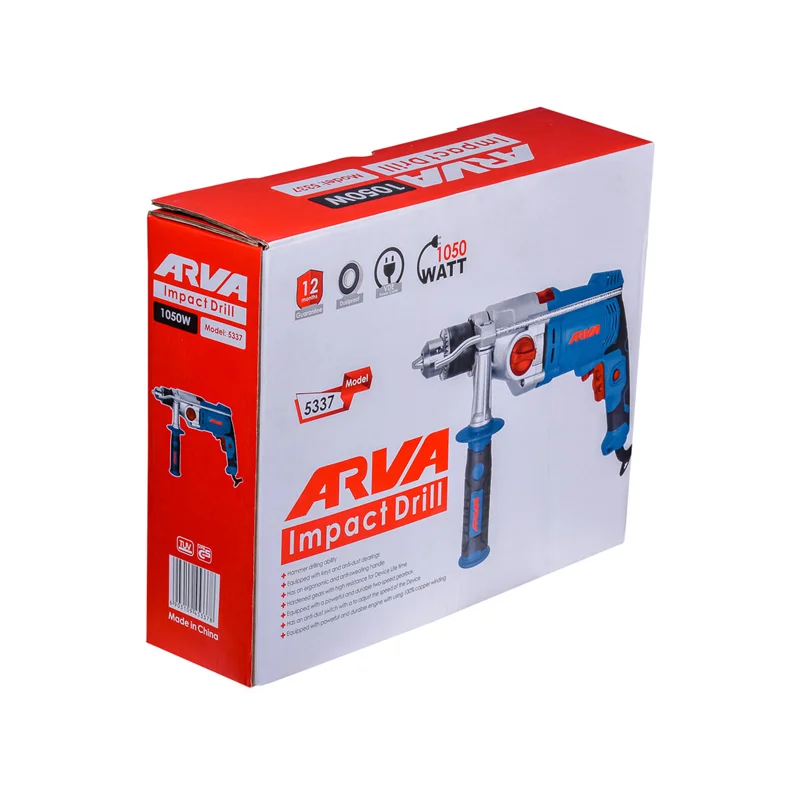 موتور ۱۰۵۰ واتی این دریل، برای سوراخکاری در سطوح سخت مانند بتن، آجر، فلز و چوب مناسب است. در موتور دریل چکشی مدل ۵۳۳۷ آروا از سیم پیچ با جنس تمام مس استفاده می شود. سیم پیچ تمام مس، عمر طولانیتر و کارایی بالاتری نسبت به سیم پیچ آلومینیومی دارد.
